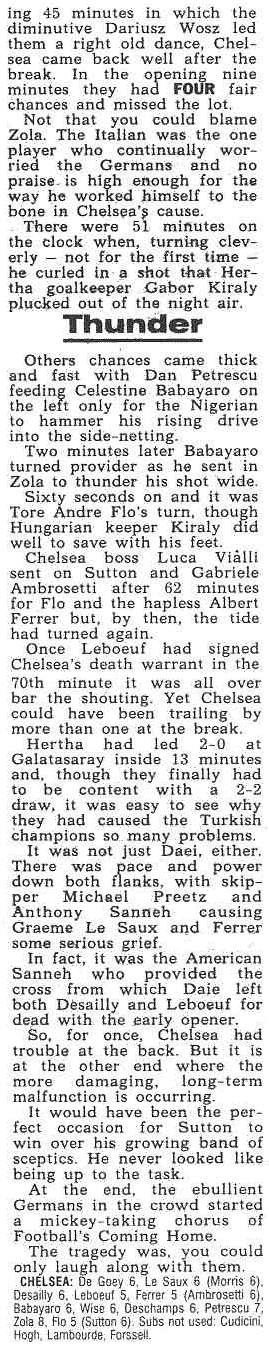 Hertha Berlin cruised to a 2-1 victory against Chelsea