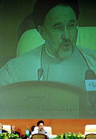 Iranian President, Mohammad Khatami, delivers his speech during the
