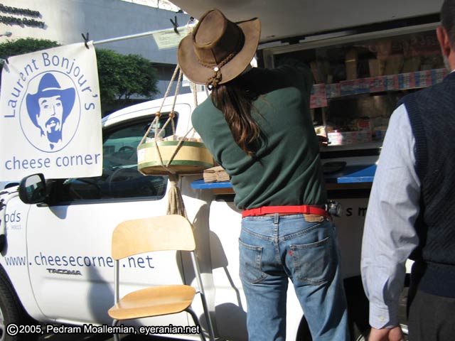 Downtown Los Angeles isn't exactly known as a pedestrian destination. That is slowly changing though with more people moving back to the area and new developments changing the harsh dual landscape of skyscrapers and run-down retail areas. The Wednesday farmer's market in front of city's main library is an example of this change. Originally started last summer for a short trial and now twice extended to an indefinite number of weeks, it is where the lunch-time suits meet the area locals to buy everything from organic produce, fresh cut flowers, baked goods, hand-made jewelry and even a quick lunch at a half dozen stands. Right in the midst of speeding cars and tall buildings, this is one place to seek out the warmth of ordinary Angelinos. -- Pedram Moallemian , Eyeranian.net
