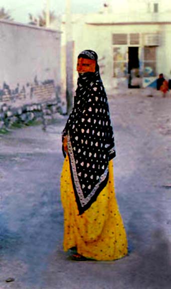 The Minabi women use different color combinations for their clothes.