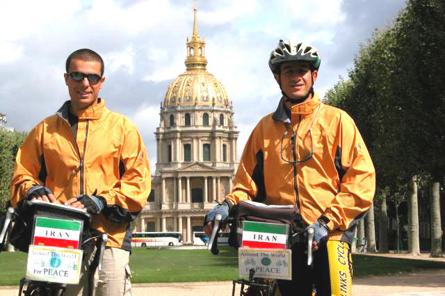 World peace cyclists Hasan Alizadeh and Amir Ahmadi reach Paris. Next>>>