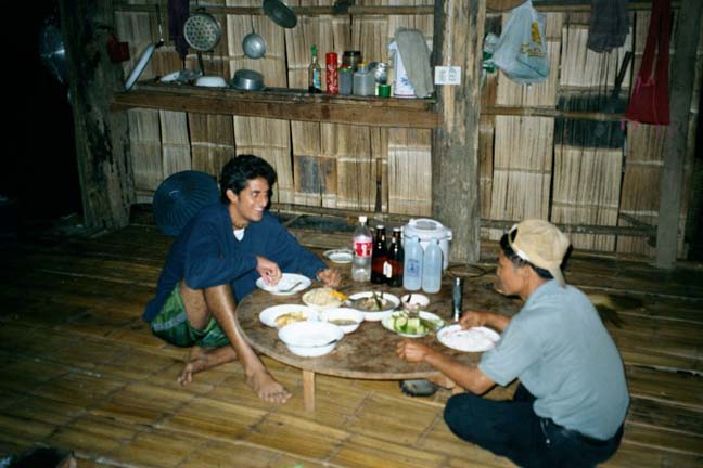 Dinner in this bamboo barn. Bamboo is surprising soft on