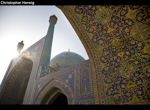 Imam Mosque dominates the large rectangular square of the same name. The 17th century mosque was built by Shah Abbas I and is considered one of the most beautiful in world with is blue-tile mosaic design and massive dome.
