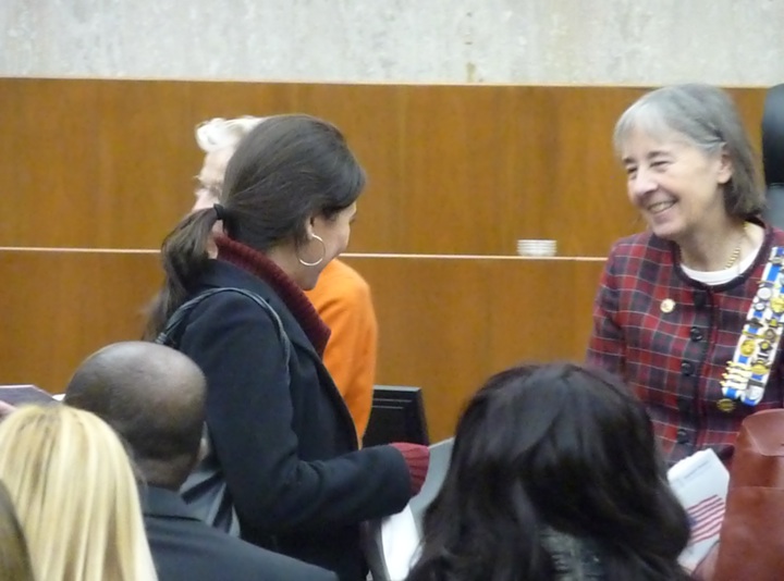 Being congratulated by Mothers of the American Revolution, a group whose members trace their roots to U.S. founding fathers.